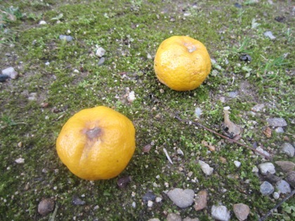 橘の木の下に実が落ちていたので、拾い上げて撮影してみました(笑)