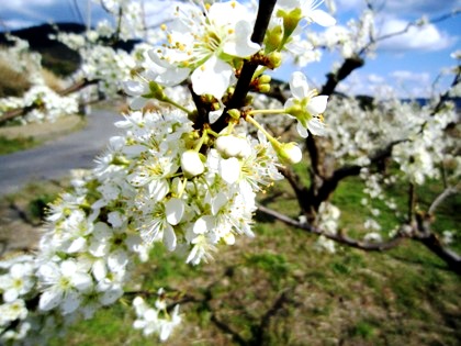 山の辺の道にある天理市トレイルセンターから長岳寺肘切り門へ向かう途中、門の右手前に奇麗な梅の花が咲いていました。