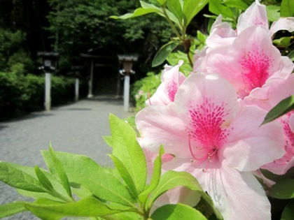 久延彦神社の参道に綺麗なツツジの花が咲いていました。